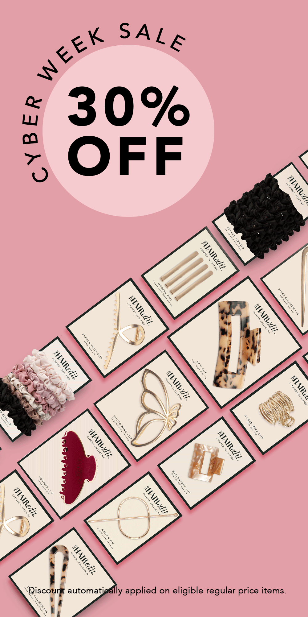 The Hair Edit Mini Butterfly Claw Clips in models hair in packaging
