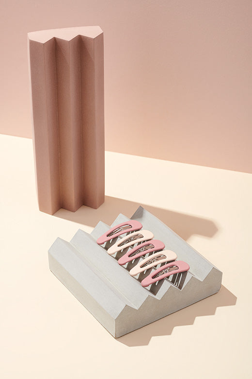 Snap Triangles Matte Hair Clips Set - Blush & Cream
