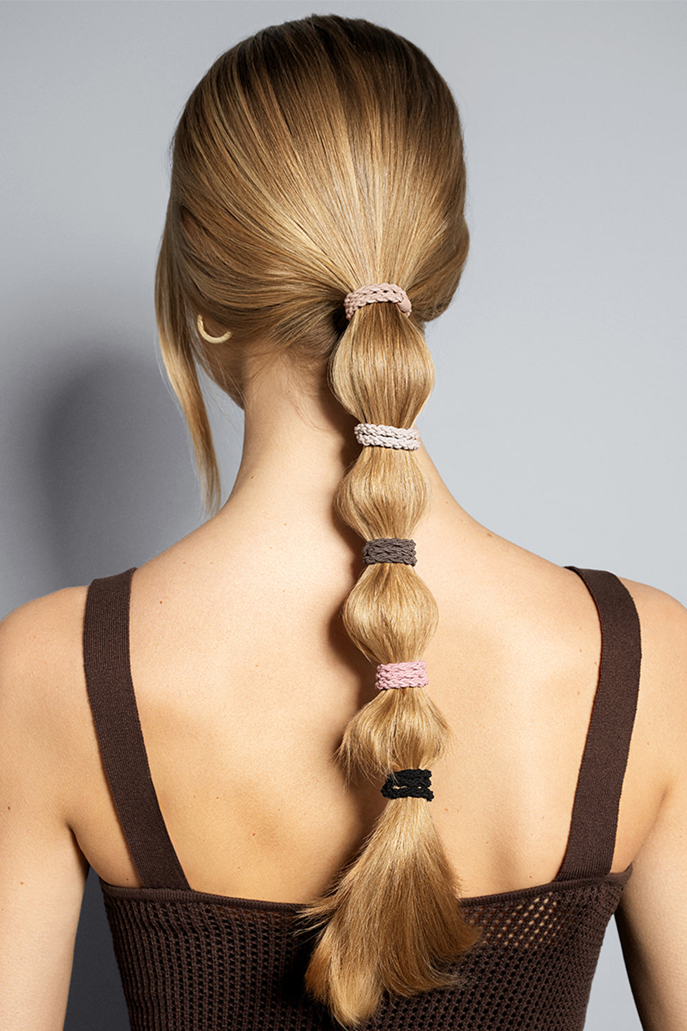 Designed for fine to medium hair, these braided hair ties offer strong hold with a touch of texture. Sleek and stylish, these bands keep your hair secure all day while adding a chic, effortless vibe to any look.