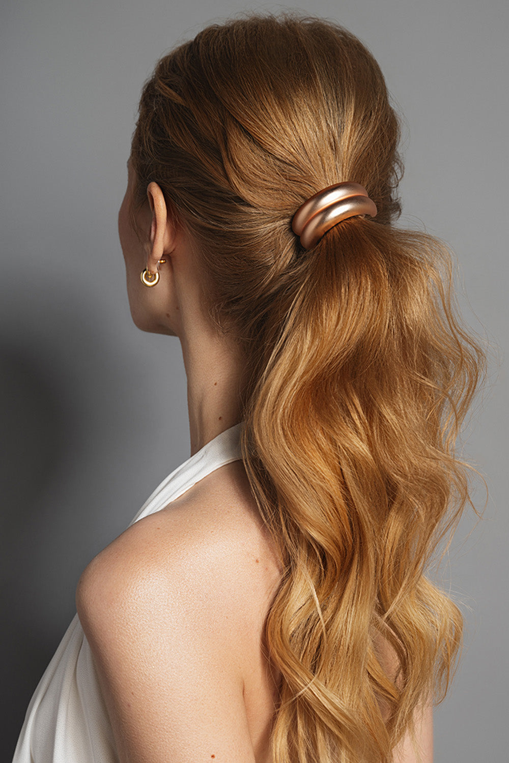 Wrap your ponytail in rose gold every day with this modern, arched hair cuff.
