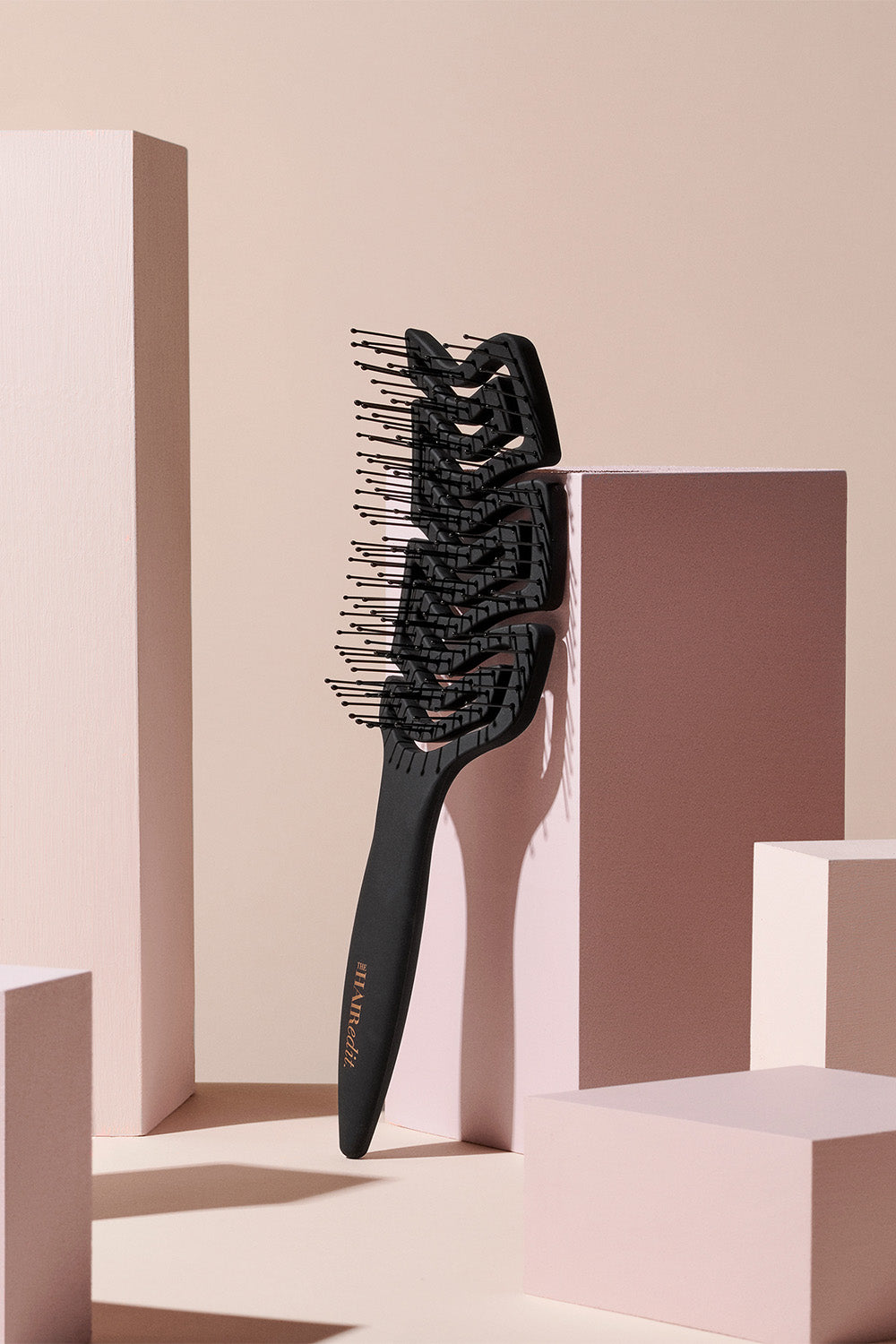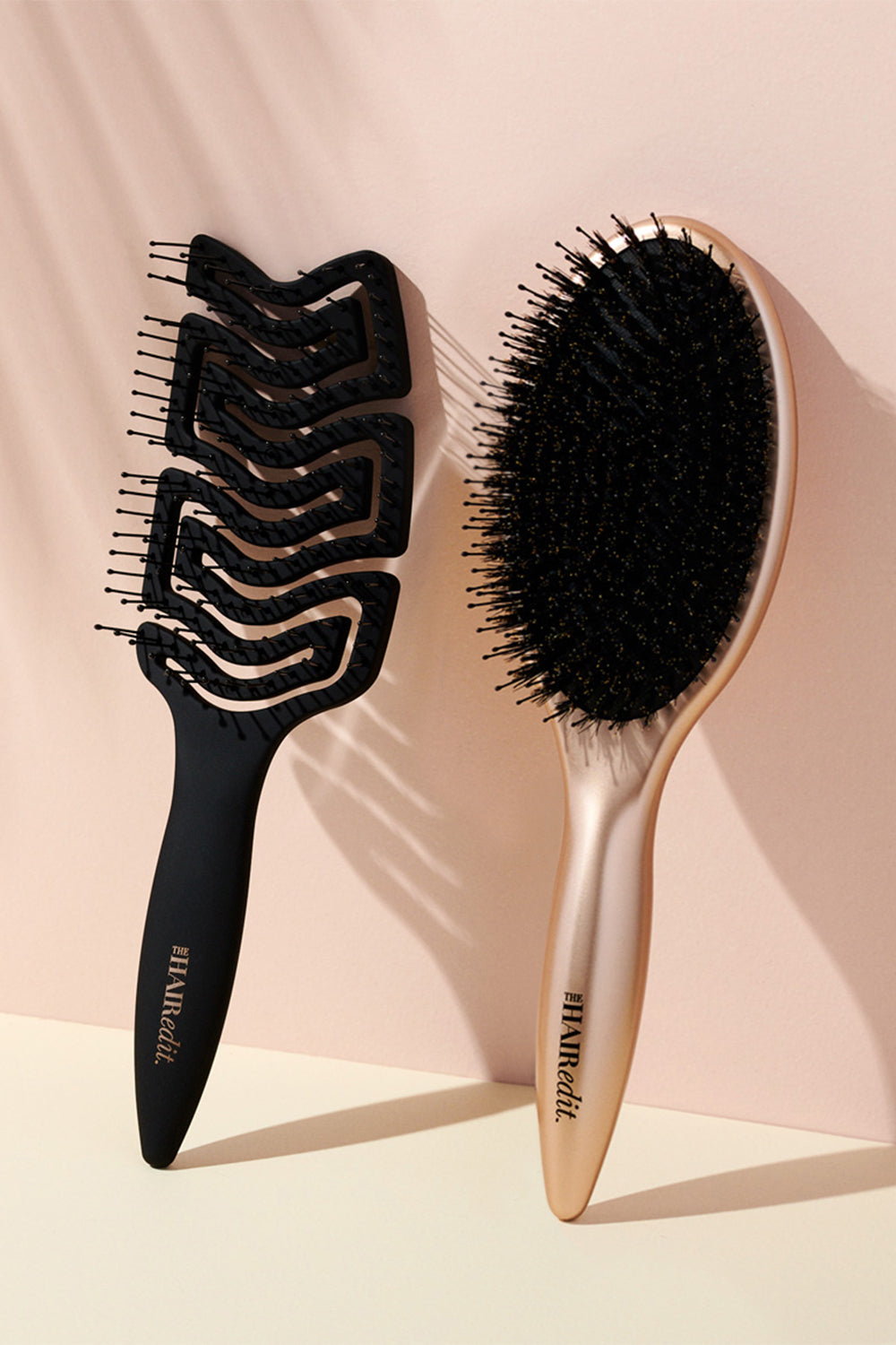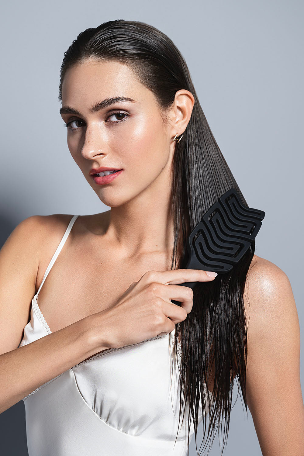 The only two steps you need for your daily brush routine. Use the Detangle & Massage Brush to gently detangle and stimulate your scalp after a shower, then follow with the Finish & Shine Brush to smooth strands and boost shine once dry.