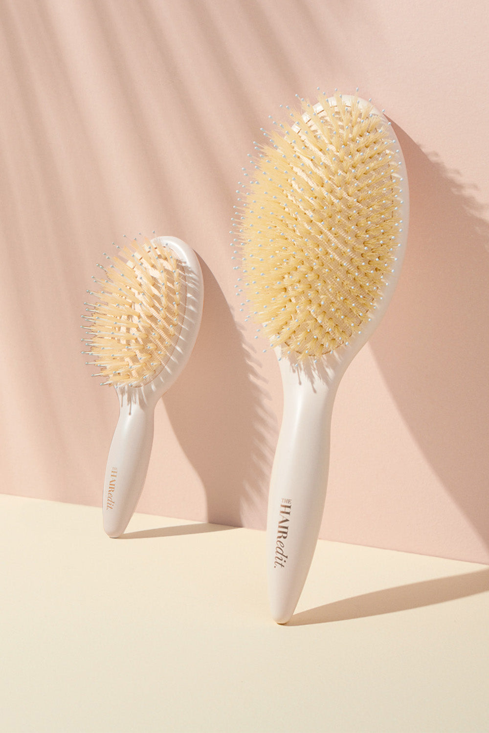 Polish your hair at home and on the go with this healthy hair brush duo. The boar bristles in these brushes distribute hair's natural moisture making it healthy and adding shine. Ball-tipped nylon pins gently detangle hair and massage the scalp.