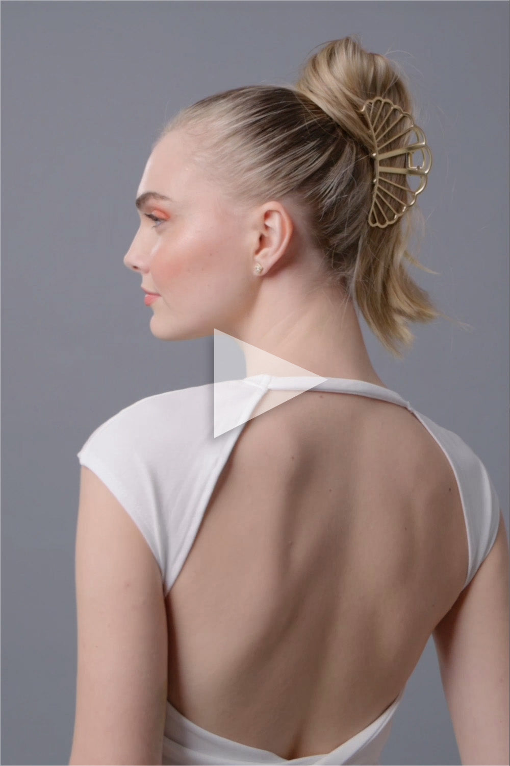Make waves. This elegant golden shell-shaped claw clip is the perfect way to keep your hair up all day and all night long.