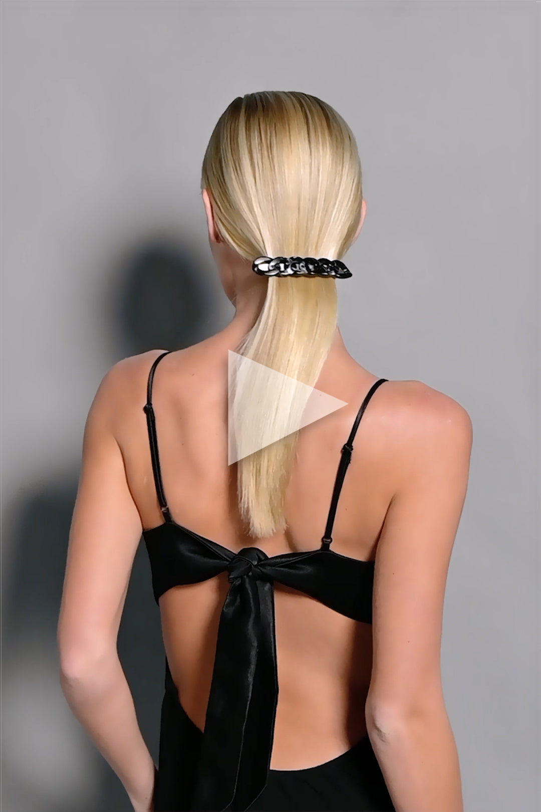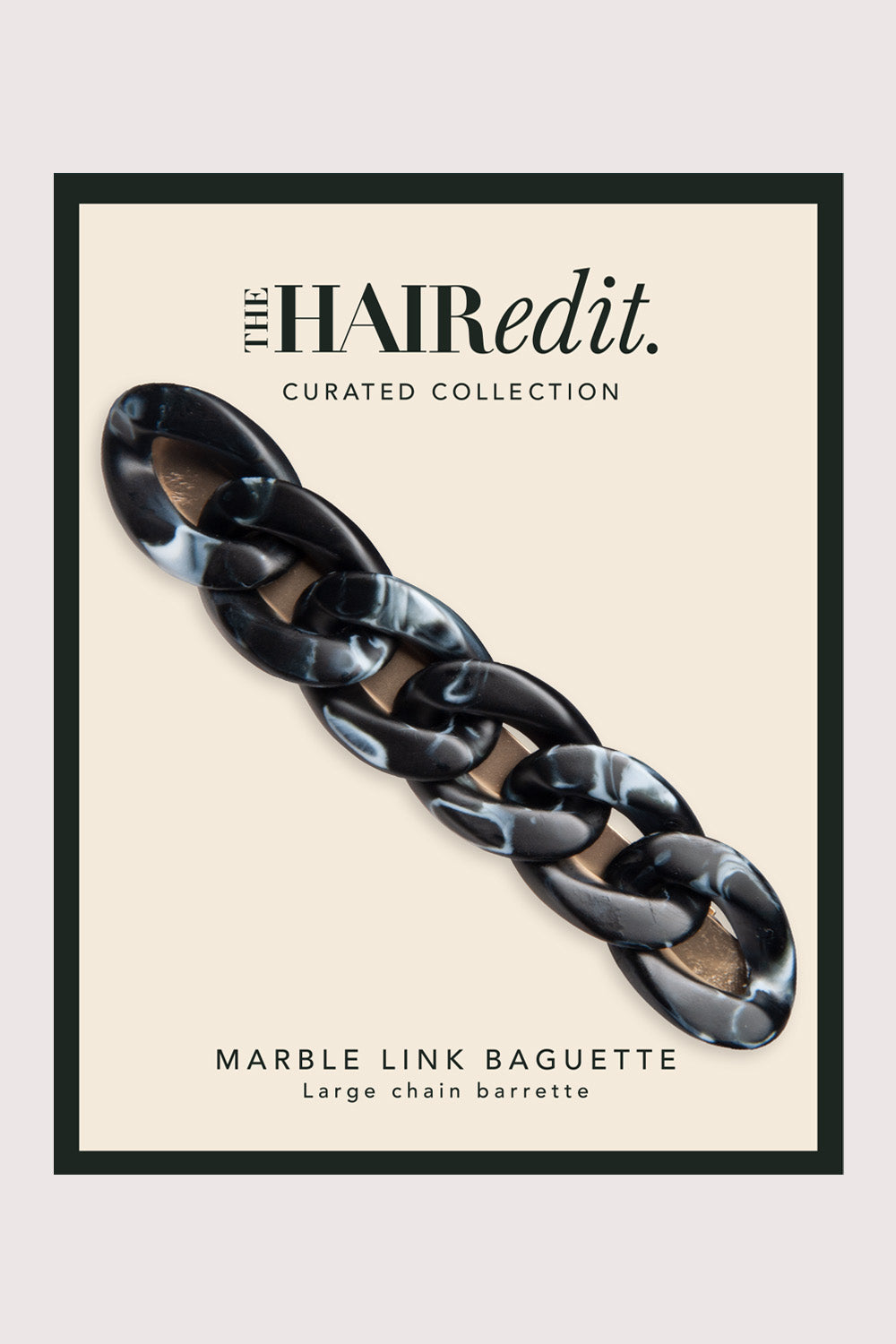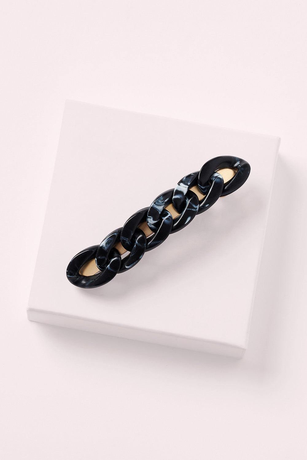 Take your half-up to the next level with this elegant black marble chain link barrette.